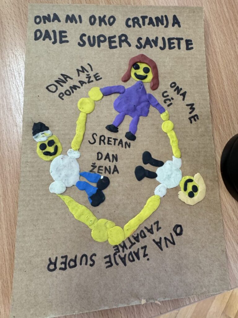 Na kraju smo izradili čestitke za bitne žene u našim životima – naše mame, bake, sestre i učiteljice – kako bismo im pokazali koliko ih cijenimo i koliko nam znače.